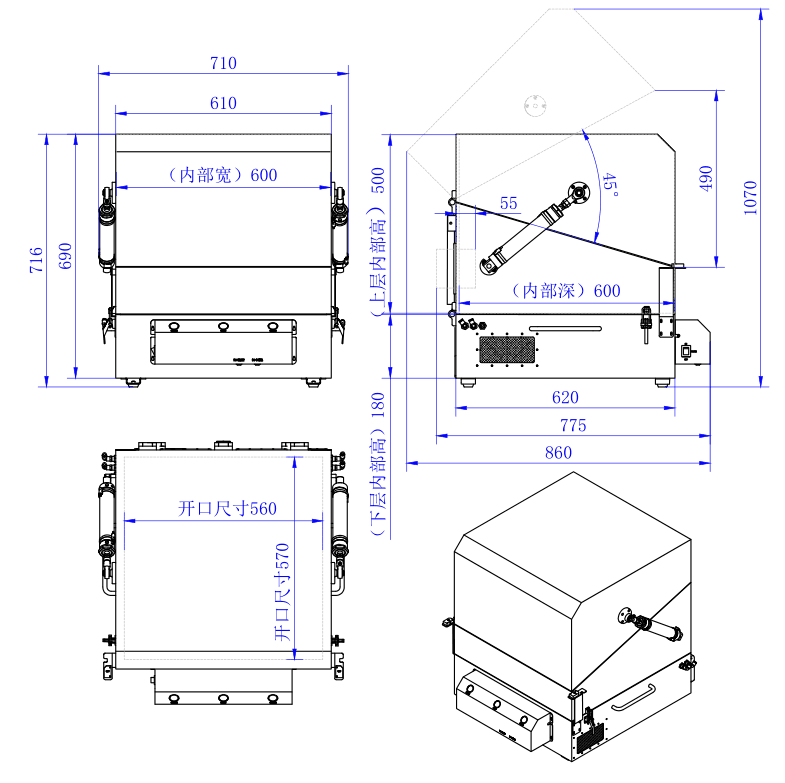 上層內(nèi)尺寸Inside Dimensions(mm) | 600(W)*600(D)*500(H) |